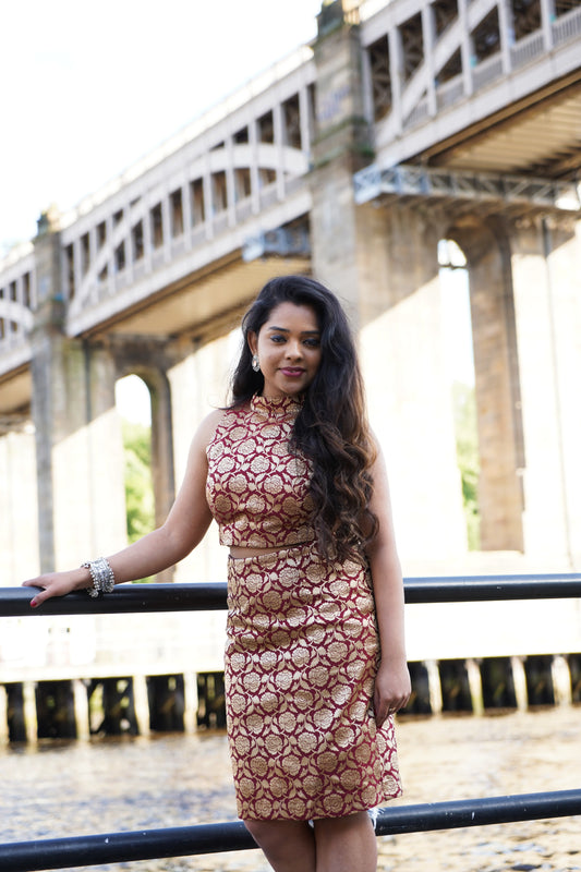 Regular price £65.00 GBPRegular priceUnit price / per£75.00 GBPSale price £65.00 GBPSaleSilk Maroon Floral pencil skirt and Blouse set