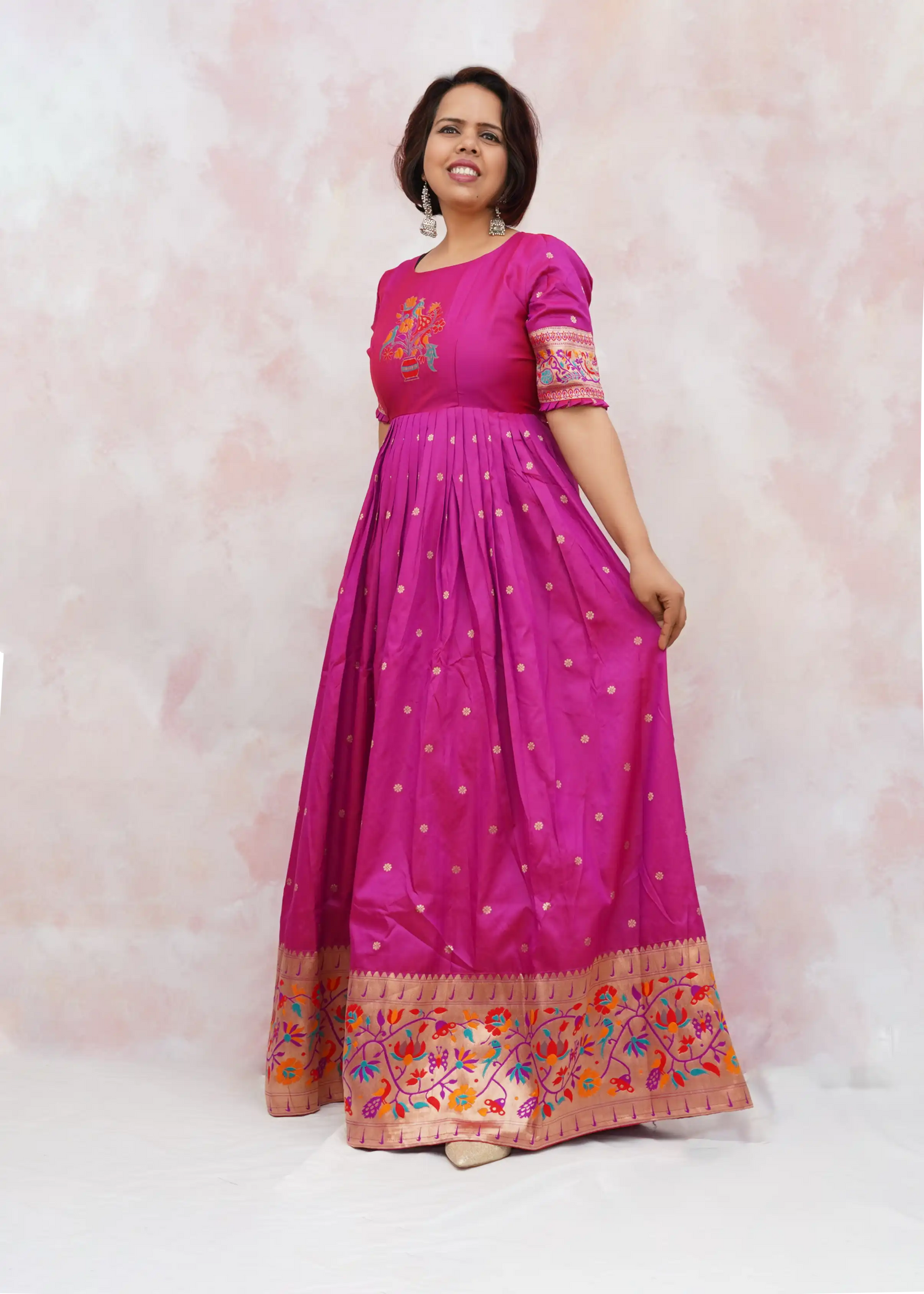 Grace meets elegance with our custom-stitched silk traditional gowns. Designed to drape beautifully, our gowns blend rich fabrics with flawless craftsmanship. Perfect for weddings, festive occasions, and special events.